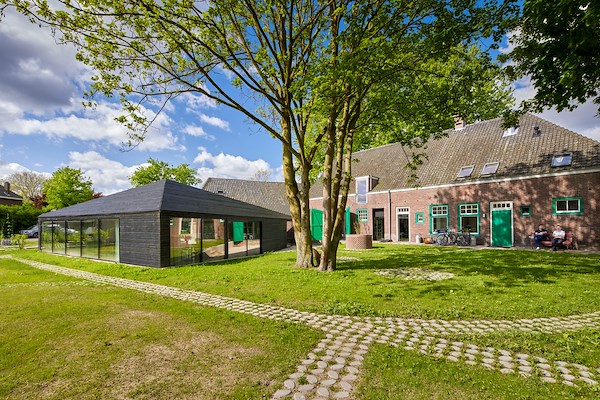 Het ensemble van de historische boerderij (1583) en de ‘nieuwe’ boerderij (1925) is uitgebreid met de ‘nieuwe schuur’ (2022). Op de plek waar volgens de historische tekeningen eerder een schuur heeft gestaan hebben we een multifunctionele ruimte ontworpen. Overdag biedt deze ruimte ons een plek voor een overleg, presentatie of werksessie. In de avond en in het weekend is het een overleg- en activiteitenruimte voor de buurt en anderen. De eerste buurtborrel was al een groot succes!