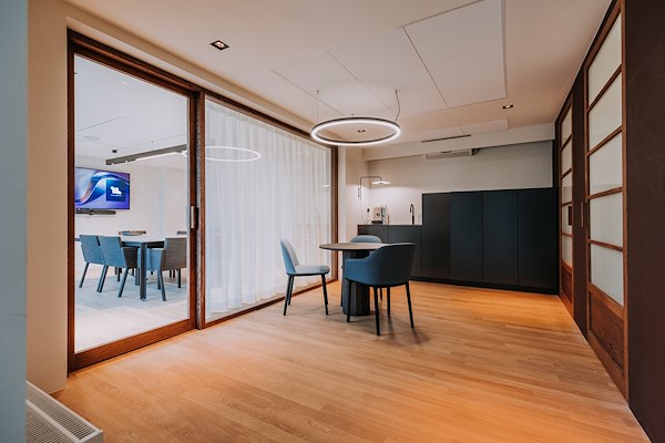 De afscheidingswand tussen de vergaderruimtes in biedt meer dan alleen een praktisch geheel.