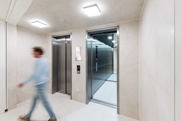 Schindler leverde in het hoogbouw gedeelte twee liften uit de Schindler 5000 serie, waarvan één werd uitgevoerd als brandweerlift conform EN 81-72. In het laagbouw gedeelte is een Schindler 3000 geplaatst met de Schindler TSD oplossing. Deze oplossing maakt een verlaagde schachtkophoogte mogelijk. De liftschacht bleef hiermee binnen de verdiepingsafstand, waardoor in het boven de schacht gelegen appartement geen vierkante meters verloren zijn gegaan.
