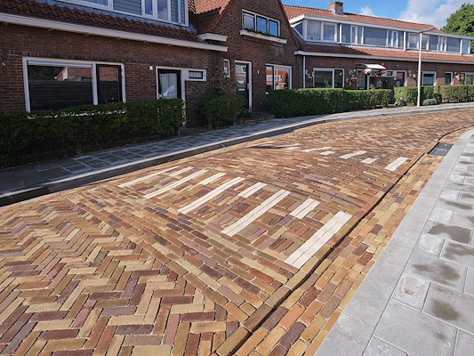 De Geitenkamp is een van de wijken in Arnhem die veel te maken had met wateroverlast bij extreme regenval. De Geitenkamp is een grotendeels versteende wijk met grote hoogteverschillen. Om de wateroverlast een halt toe te roepen, besloot de gemeente om de regenwaterafvoer af te koppelen van het bestaande riool. Daarbij kreeg de bestrating z’n historische uitstraling weer terug dankzij de Oudhollands collectie van Wienerberger.