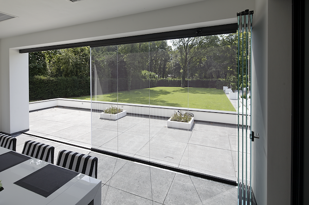 M-view balkonbeglazing beschermt tegen wind, kou en neerslag en is in een eenvoudige handeling volledig te openen.