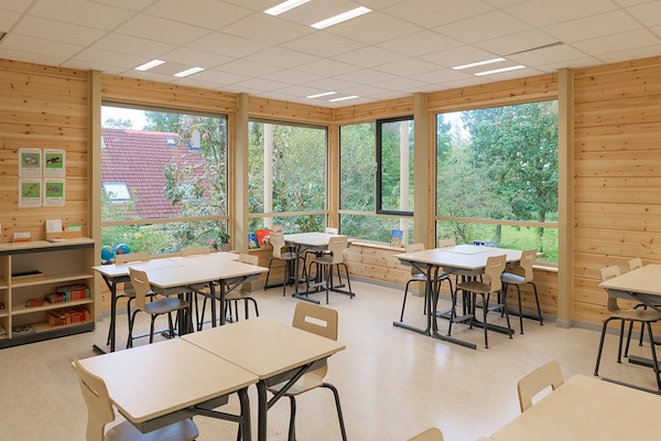 Hout is niet alleen hernieuwbaar en CO2-neutraal, maar heeft ook uitstekende thermische en akoestische eigenschappen. Bovendien is hout vochtregulerend, waardoor minder installatietechniek nodig was om een gezond binnenklimaat te creëren.