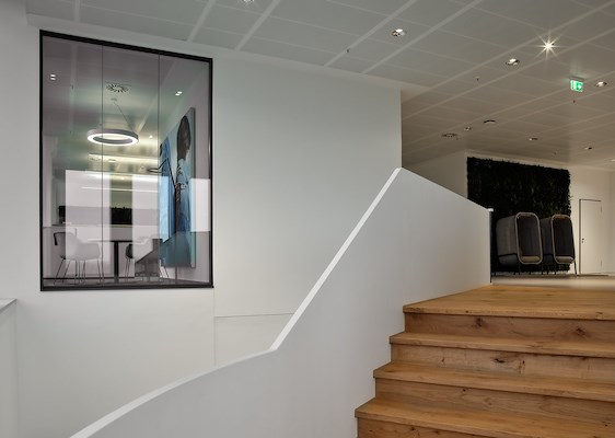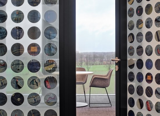 In de kantoren en vergaderfaciliteiten van Europese distributiecentrum zijn Cradle to Cradle Silver gecertificeerde concepten van QbiQ toegepast: de iQ Structural wand met een dikte van 100mm waarin 2 verschillende diktes glas zijn toegepast. Voor de kaderdeuren is gekozen voor deurtype KDD90F, een flush kaderdeur voorzien van 2x akoestisch gelaagd glas, dubbele dichting en een valdorpel. De kaderdeur heeft tevens een dikte van 100 mm. Met deze wand en deur combinatie wordt voldaan aan de gestelde geluidsisolatie-eisen volgens WELL.