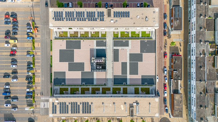 Het gebouw biedt ruimte aan 34 appartementen verdeeld over twee bouwlagen met een commerciële plint van circa 5000 m² waar ruimte is voor een supermarkt en retail.