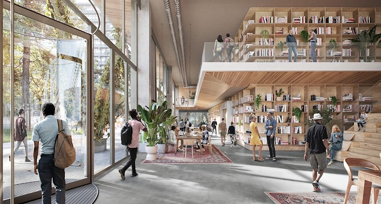 Populus geeft een sociale impuls aan het gebied. Met een nieuw centraal plein, waar verschillende bewegingen door de wijk in samenkomen. En met Third Places, plekken waar mensen hun tijd besteden naast thuis en werk. In Populus brengen we verschillende van dit soort plekken samen, van een praktijk voor fysiotherapie, een bibliotheek, een plek voor optredens tot een buurtcafé. Met veel aandacht voor zichtlijnen, licht, openheid en intimiteit verbinden we deze plekken tot doorlopende zones rond het plein waar bewoners en bezoekers zich veilig voelen en elkaar kunnen en willen ontmoeten.