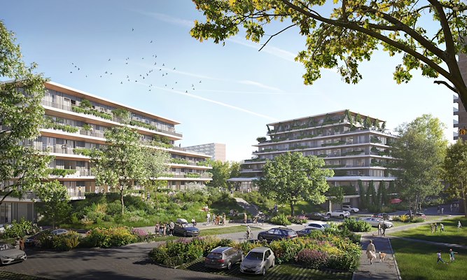 Flexibiliteit, collectiviteit en natuur. Dat karakteriseert wonen in Populus. Een kolommenstructuur moet nu en in de toekomst voor grote vrijheid zorgen in het indelen, combineren en aanpassen van de woningen. Bewoners hebben toegang tot verschillende soorten gedeelde ruimtes, zoals bijvoorbeeld een collectief dakterras en de huiskamer in blok B. In de alzijdige blokken komt veel licht binnen, in het bijzonder in de hoekwoningen met ruim uitzicht. De blootliggende houten kolommen geven sfeer en samen met de plantenbakken op de buitenruimtes brengen ze de natuur overal in huis. Vanaf de balkons kijken bewoners uit over groene daken, begroeide terrassen en een levend landschap.