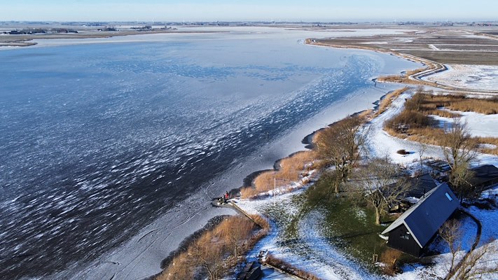 Het grote huis met zijn ingetogen vorm weerspiegelt perfect de vlakheid van het Friese landschap. De grootste uitdaging voor de architect was om deze natuurlijke ligging te respecteren en een visuele verbinding te creëren met het meer, het dorp met zijn kerktoren en een verre windmolen.
