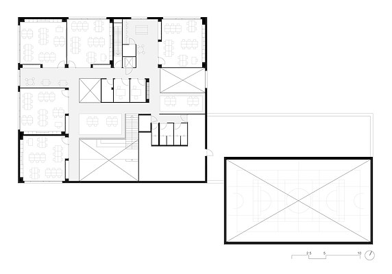 Met vides in het gebouw zorgen ervoor dat er altijd onderling contact is tussen de begane grond en de eerste verdieping. Iedereen in deze school is betrokken op elkaar, een duidelijke wens van de opdrachtgever.