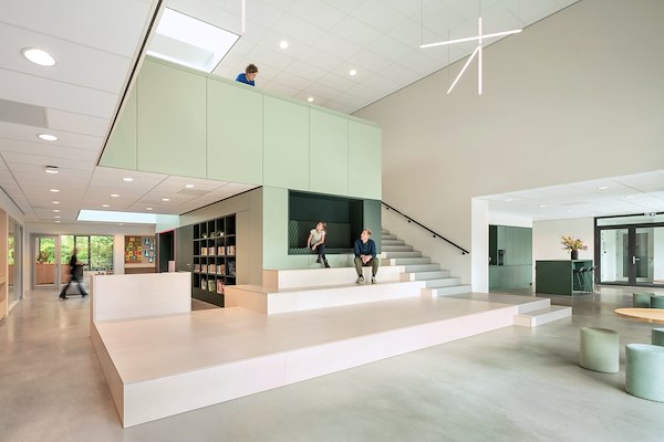 De onderwijsvisie in dit IKC kenmerkt zich door relatief kleine klaslokalen met grote leerpleinen, waarbij groepsdoorbrekend werken mogelijk is. De leerpleinen liggen verspreid door de school, direct aangesloten op de klaslokalen. Alle circulatieruimte in het gebouw hebben we effectief ingezet als plek om elkaar te ontmoeten, te leren en te spelen.