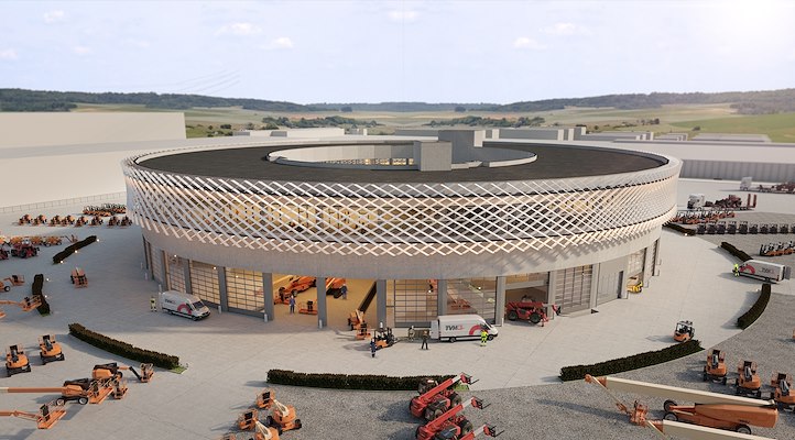 Het nieuwe bedrijfsgebouw van TVH Equipment, gelegen langs de E17 nabij Waregem in België, is niet alleen een architectonisch pronkstuk, maar ook een staaltje van doordacht ontwerp aangepast aan de praktische behoeften van het bedrijf. Met meer dan 40 werkplaatsen en kantoren voor meer dan 200 personeelsleden, moest het ontwerp efficiënt zijn. De ronde vorm van het gebouw bleek een praktische keuze om de loopafstanden te minimaliseren. Daarnaast is het gebouw volledig onderkelderd om voldoende parkeerruimte te bieden.