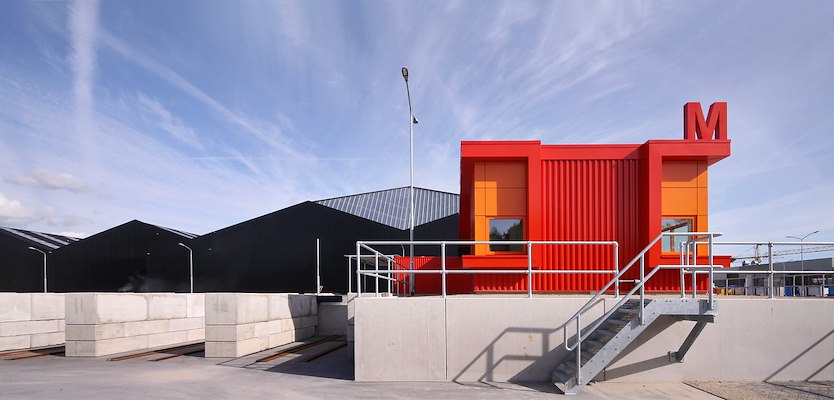 Voor de gemeente Dordrecht heeft GROOSMAN architecten een ontwerp gemaakt voor de nieuwe milieustraat, waarbij hoog is ingezet op het gebied van duurzaam bouwen. De op locatie aanwezige bouwmaterialen waren het uitgangspunt voor dit ontwerp. De constructie van de bestaande hallen en het bestratingsmateriaal is geheel hergebruikt. De nieuwe gevels van de hallen zijn ook in de toekomst te hergebruiken, door nu industrieel, flexibel en demontabel te bouwen (IFD). Omringt door de grote industriële zwarte hallen staat het meldstation als centraal middelpunt van het terrein dat met zijn knalrode gevel het visitekaartje van de milieustraat is geworden.