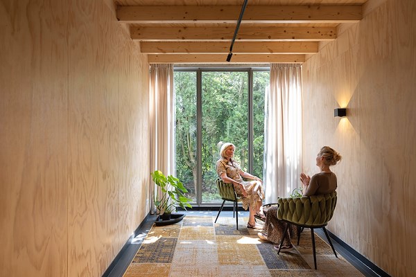 Op groene een locatie die jarenlang werd gebruikt voor kassenbouw heeft GROOSMAN architecten in opdracht van Diana van Os een multifunctionele kassenzone getransformeerd naar een plek waar zorgen, ontmoeten en verbinden centraal staat.
