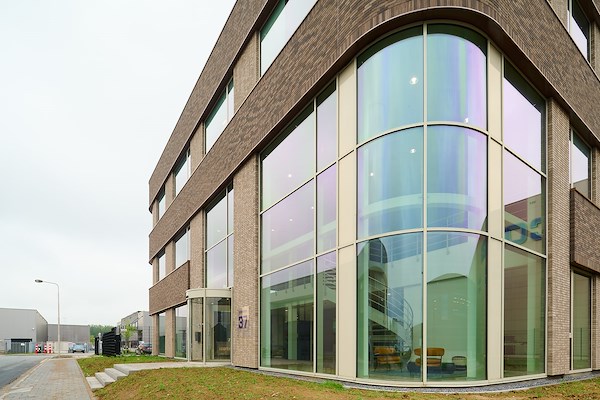 "Voor het team van Stalumex is dit natuurlijk een prestigeproject, vooral omdat het gebouw zich praktisch in hun achtertuin bevindt. Ze hebben ons erbij betrokken omdat de architect speelde met een combinatie van gebogen raam- en gevelpartijen voor de kantoorruimte en rechte, gesegmenteerde kozijnen voor het magazijn. Het resultaat mag gezien worden en de aluminium ramen, deuren en vliesgevels voegen echt iets toe aan de architectuur. Alle elementen zijn uitgevoerd in kleur 7032 - Kieselgrau, een kleur die niet vaak wordt gekozen maar uitstekend past bij de kleurschakeringen in de gevels. Dankzij onze