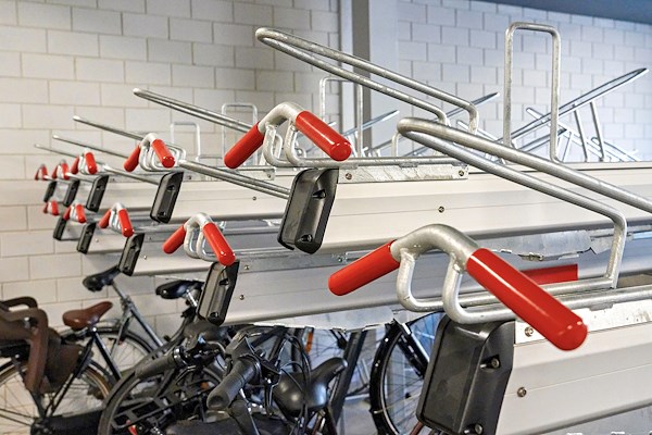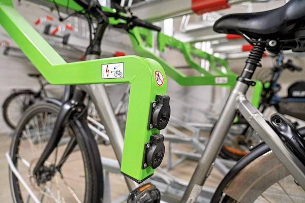 Oplaadpunten voor e-bikes op etagerekken
