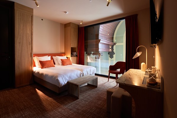 De 43 hotelkamers zijn gesitueerd in het schip van de kerk. Ze staan volledig los van het kerkinterieur: zo kan er in de kamers zelf een optimaal binnenklimaat worden gecreëerd en maximaal comfort worden behaald, zonder daartoe de monumentale afwerkingen van de kerk zelf aan te tasten. Vanuit de kamers hebben gasten een prachtig uitzicht op het historische kerkinterieur en de bijzondere details, en ook vanuit de verkeersruimten en openbare horeca is de grootsheid van het kerkinterieur weer beleefbaar gemaakt.