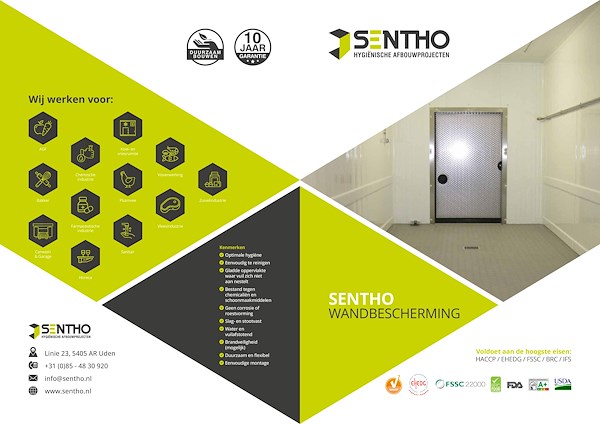 Het lijkt een onmogelijke opdracht maar wat ons betreft is niets onmogelijk. Door de zware omstandigheden bij deze vleesverwerker waren de wanden na jarenlang onderhevig te zijn geweest aan vet, zout en rook en vocht bijna niet meer op te knappen. Verlijming in deze situatie was niet de oplossing, dit omdat de wanden op waren. Dan hebben we gelukkig altijd nog de keuze om voor onze renovatie panelen te gaan. Voordeel van de panelen is dat na montage de productie direct kan worden opgestart omdat de panelen geschroefd zijn tegen de oude stalen sandwichpanelen en deze zijn afgewerkt met een strook Sentho FRP en daarna afgekit met onze unieke 2 componenten epoxy.