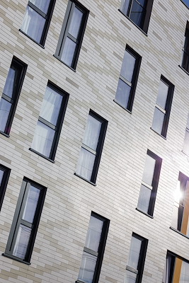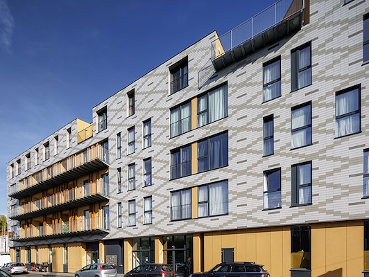 Sociale woningen met gevelstroken in vezelcement