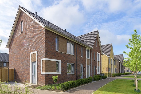 De woningen hebben per blok een andere steensortering. Binnen de blokken werken we met staande en liggende kaders, hierdoor krijgen de blokken een eigen dynamiek. Binnen de gekeimde kaders is een invulling gemaakt van metselwerk in koppenverband. De positie van de koppen varieert ook per blok waardoor er een vrije stedenbouwkundige opzet ontstaat die ook aan de straatgevels op de koppen diversiteit geeft.