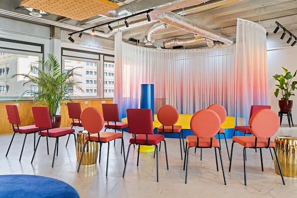 Wauw, wat een kleur! De stoffen en het maatwerk zijn niet zomaar details, maar de kern van de sfeer. De gordijnen sluiten naadloos aan op het hoofddoel van de trainingsruimte bij The Speech Republic: een plek waar mensen zich durven uit te spreken.
