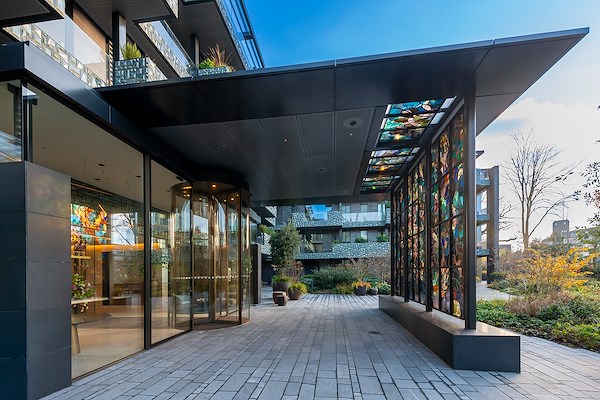 De oude Valeriuskliniek was beroemd om de iconische glas-in-loodramen. De kleurrijke werken, gemaakt in 1938, waren zeer beschadigd, maar grote delen zijn bewaard gebleven en in het nieuwe ontwerp geïntegreerd. Zo vindt het glas-in-loodfragment van de hoofdentree een nieuw onderkomen onder de overkapping van de nieuwe hoofdentree. Het interieur is licht dankzij de grote transparante gevel. Harry van den Berg vult aan: “De ambitie van de opdrachtgever bij dit project was om een zo transparant mogelijke entree te realiseren. Boon Edam heeft ons daarbij geholpen met de