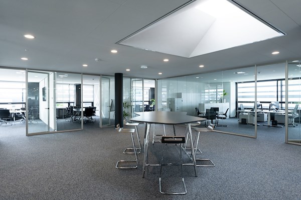 Net als in het gebouw in Oostenrijk werd Kugelgarn® van Fabromont gekozen voor de vloerbedekking dankzij de positieve ervaring. Met zijn lichte en rustige tinten past de textiele vloerbedekking goed bij het moderne, aluminium interieur en zijn eigenschappen maken Kugelgarn® ideaal voor grote en open kantoorruimtes. Omdat moderne werkplekken tegenwoordig ook comfort en gezelligheid moeten bieden, past een Kugelgarn® vloerbedekking perfect in kantoorlandschappen.