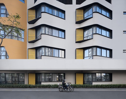 Despite the curved edges of the floor slabs, the buildings adopt a standard structural grid to facilitate the assembly of prefabricated components. The external walls, columns, floor slabs and staircases are rationalized to enable a minimum 40% prefabrication rate for both the overall construction and for each individual building. Prefabrication reduces cost, time, waste, and urban disruption. It also enables a higher quality of construction and finish.
