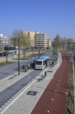 Onlangs is de herinrichting van het busstation afgerond. Het is voorzien van nieuwe rijbanen en nieuwe bestrating voor voetgangersgebieden en busperrons. Ook kwamen er 7 extra bomen en circa 700 m2 extra groenoppervlak bij. Grote bomen zijn zoveel mogelijk behouden en plantvakken vergroot. De verharding watert af in deze plantvakken. Zo is het station gemoderniseerd en het hele jaar voorzien van kleur en biodiversiteit. De unieke mixbestrating draagt bij aan een harmonieuze verbinding tussen de verschillende gebouwen en de ruim opgezette groenvoorzieningen.
