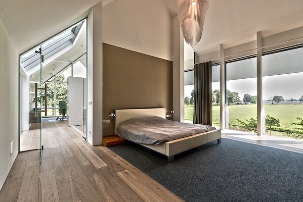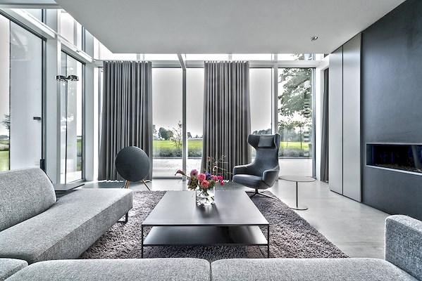Door een zijgevel en kopgevel in glas uit te voeren ontstaat er een optimale beleving van de omgeving.