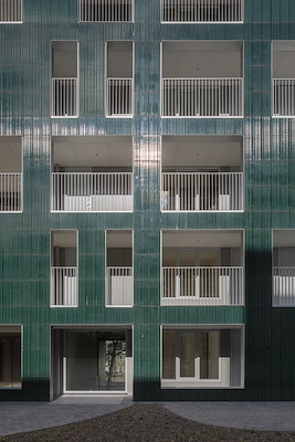 • De getrapte gevels en de sun-cuts daarin. Ze zorgen voor veel licht, lucht en zicht tussen de bouwblokken en in de gemeenschappelijke binnentuin.