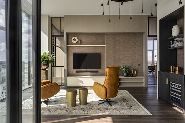 Dit waanzinnige penthouse is verdeeld over de twee bovenste verdiepingen van het gebouw NEXT, gelegen in het creatieve hart van Eindhoven; Strijp-S. Het was een eer om zo’n prachtige plek te voorzien van een passend interieur!