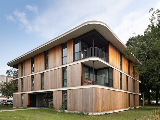 In Utrecht bevindt zich dit huurappartementencomplex in een groenrijke omgeving, in het complex zijn in totaal 13 appartementen zijn gerealiseerd. Het complex is gunstig gelegen, op slechts 10 minuten afstand van het centrum. Bovendien is het volledig duurzaam. Voor de gevel is er gebruik gemaakt van thermisch gemodificeerd Ayous (Obèche Noir®).