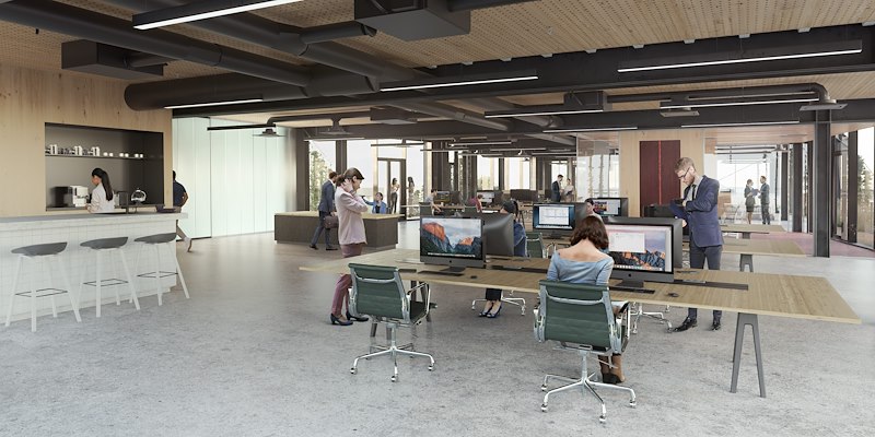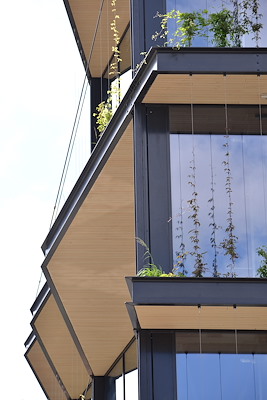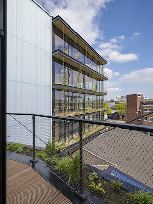 Het kantoorgebouw bestaat uit twee delen die met elkaar verbonden worden door een heldere, lichte kern waarin het trappenhuis gevestigd is. Op elke verdieping kunnen de twee delen zowel samen als apart van elkaar in gebruik worden genomen. Het centrale trappenhuis is volledig in hout bekleed en brengt gebruikers uit de verschillende delen samen. Het gebruik van vele natuurlijke materialen maken het kantoorgebouw tot een aangename en gebruiksvriendelijke werkplek. De diverse buitenruimtes bij het pand zijn ingericht met verschillende soorten groen, zoals een Pocketpark entree, inpandige groene patio’s, balkons met plantenbakken, verticaal groen aan de gevels en een gedeeltelijk mos sedum dak.