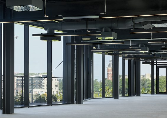 Het gebouw faciliteert een verscheidenheid aan kantoormogelijkheden.