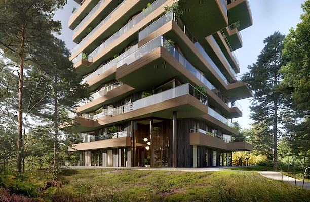 In het project Beaufort in Zeist is de groene omgeving geïntegreerd met de bebouwing. “BIM zorgt ervoor dat al onze informatie altijd up-to-date is,” legt Max Hissink uit. Ze gebruikten de Design Option-tool in Archicad om snel meerdere varianten te evalueren.