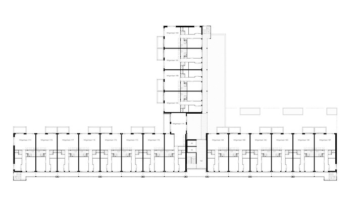 Door de grootte van de opgave waren we in de gelegenheid om niet alleen gebouwen te vervangen door nieuwe woningen, maar ook de stedenbouwkundige structuur aan te pakken. We hebben daarbij zoveel mogelijk voortgeborduurd op de aanwezige structuur, met de intentie om zoveel mogelijk op de oude footprint van de te slopen blokken terug te bouwen. Behalve het aansluiten op de oorspronkelijke stedenbouwkundige opzet, was een belangrijk uitgangspunt het verbeteren (van de inrichting) van de openbare ruimte en het creëren van een grote groene pleinruimte.