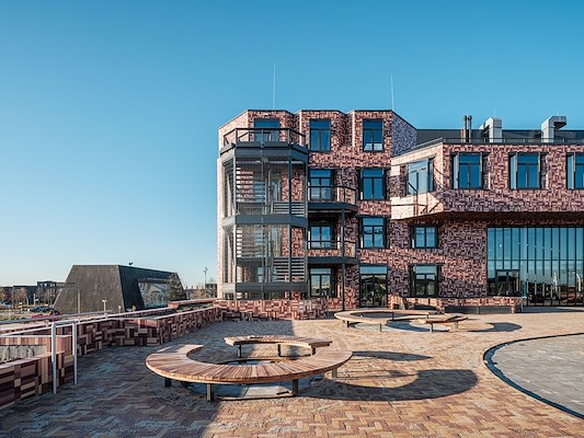 Het gebouw, naast de Pathé bioscoop gelegen, huisvest naast leerlingen ook studenten van docentopleidingen van MBO, HBO en de Universiteit, in een school van 11.700 m². De sporthal beslaat 2.600 m² met een openbaar plein van 2.000 m² op het dak. De ingang van de school is aan het Berlijnplein 300, terwijl sporthal en plein via de Zagrebstraat bereikbaar zijn. Met veel glas, erkers, een open indeling en een openbaar plein op het dak is het een toegankelijk en uitnodigend gebouw.
