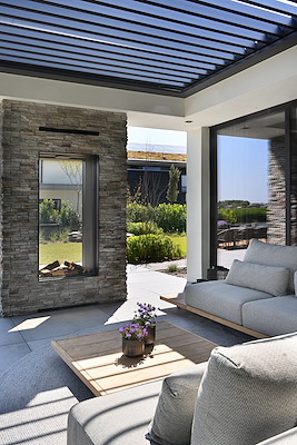 Stijlvol louvredak boven loungebank en haard