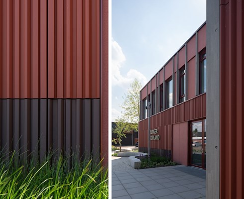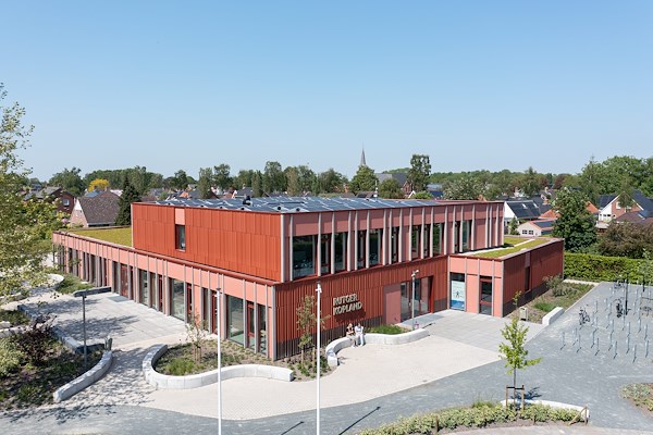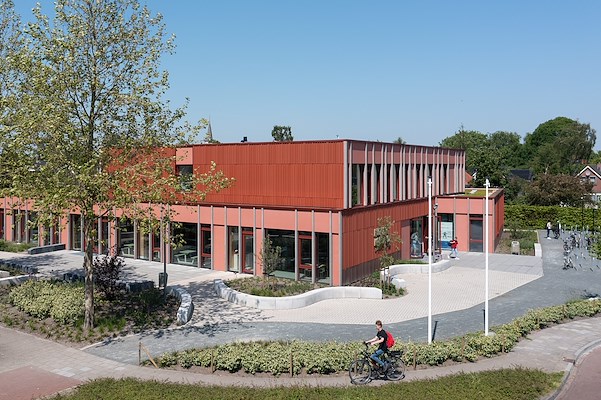 Het vernieuwde gebouwvolume is eenduidig en helder. De gevarieerde, zorgvuldig gedetailleerde gevels geven het gebouw ritmiek en geleding en een vriendelijke en dynamische uitstraling. De aansluiting op het maaiveld zorgt voor direct contact tussen gebouw en dorp. De opbouw op de verdieping is verfijnd gedetailleerd aangesloten, zodat ook hier het gebouw in maat en schaal aansluit op het dorp. Aan de oostzijde sluit de nieuwe opbouw aan op de gevel van de begane grond, terwijl hij aan de zuidzijde even terugligt. De kleurstelling van de gevels voegt zich in de directe omgeving en sluit aan bij de typerende rode Groninger baksteenkleur.