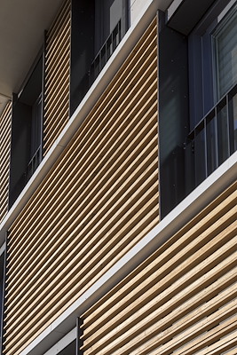 Een mooie combinatie van hout, lichte gevelpanelen en ruime balkons.