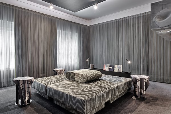 Een opvallende kenmerk is onder andere een speciaal ontworpen sculpturaal bed dat ook kan dienen als sokkel en container voor Ronalds designstukken tijdens speciale gelegenheden. Bovendien kunnen gasten het door RVDK ontworpen kunstwerk boven het bed bewonderen, gemaakt van restmaterialen uit de mode.