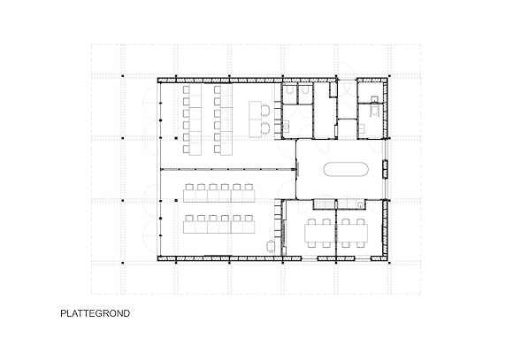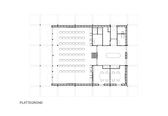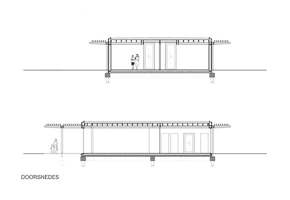 Een centrale pantry in het midden van het gebouw organiseert de zalen, minimaliseert de circulatieruimte en optimaliseert de plattegrond. De flexibele wand tussen de collegezalen zorgt voor flexibiliteit voor verschillende soorten gebruik en groepsgroottes. Het interieur is aanpasbaar en komt tegemoet aan veranderende behoeften in de toekomst. Een luifel met lamellen speelt met textuur en tinten, die schaduw biedt in de zomer en licht doorlaat in de winter. Deze efficiënte oplossingen verkleinen de voetafdruk van het gebouw, maken gebruik van natuurlijke bronnen en zorgen voor een effectief gebruik van materialen. Ons ontwerp is gericht op het harmoniseren van functionaliteit, duurzaamheid en natuur.