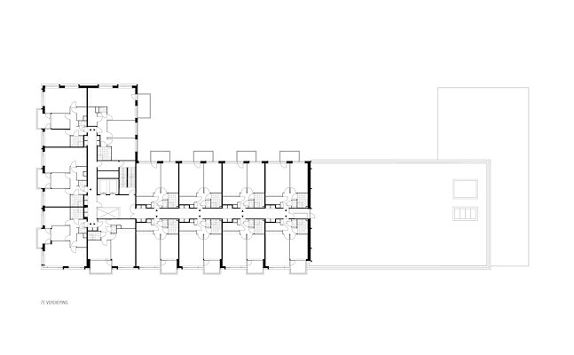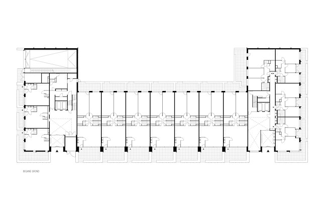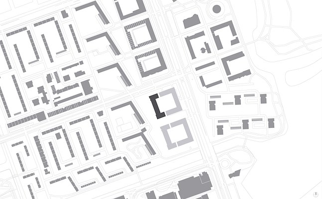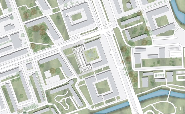 De overgangen naar de publieke ruimten zijn zorgvuldig vormgegeven door middel van lage tuinmuren, met daarachter een haag. Hierdoor ontstaat een levendige plint. Het ruime binnenhof, van een zeer grote omvang, zal worden ingevuld met terrassen en bloeiende plantenzones en een semi-openbare sfeer creëren.