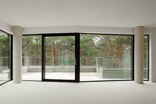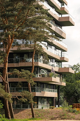 De appartementen zijn rondom voorzien van royale buitenruimtes. Door het wisselend laten uitsteken van vloervelden ontstaan op strategische plekken grote ‘buitenkamers’. Ter plaatse van deze ruimtes, mede door het knikken van de gevels lijkt de grens tussen binnen en buiten te vervagen, waarmee de bosrijke omgeving deel gaat uitmaken van het wonen op deze bijzondere plek.