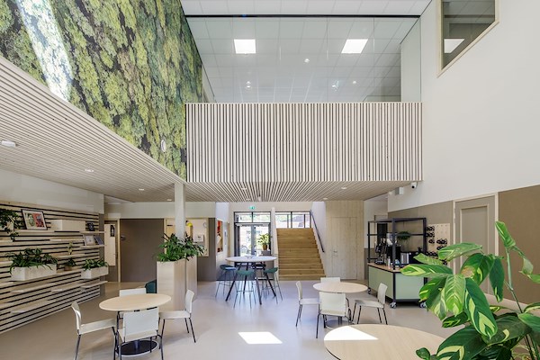 Het interieur heeft een rustige, prikkelarme sfeer bij het Emaus College in Ermelo