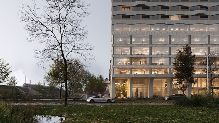 Een high-end opdracht waarin alle elementen een nabewerking krijgen. Circa 500 elementen worden gepolijst en circa 1000 elementen worden gestraald en ingepoetst zodat ook de stortzijde als zichtzijde kan worden ervaren. De elementen zullen samen met het aluminium op de grond aan de HSB geassembleerd worden waarna deze als één geheel gemonteerd wordt op de vloer en het gebouw de hoogte in gaat.