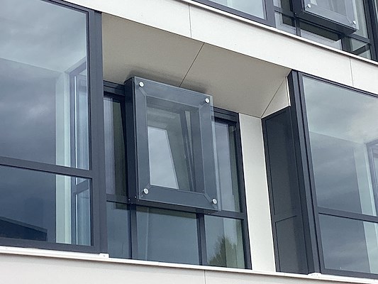 Geluidsoplossingen door Mview+ Silent Air Gevelschermen