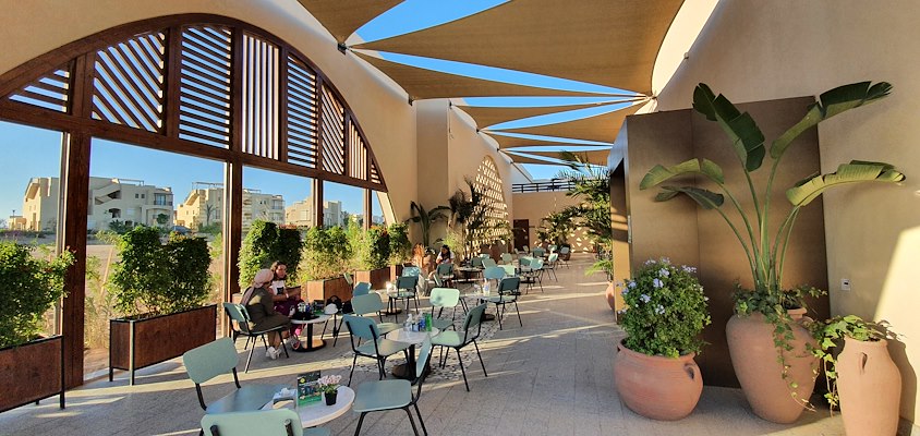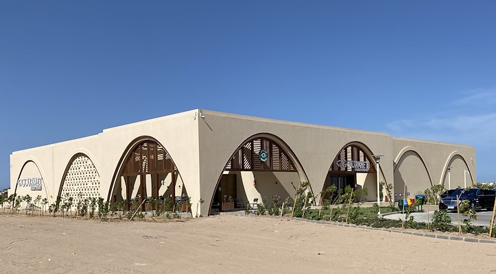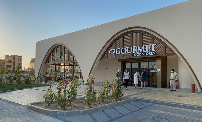In El Gouna, Egypte heeft JDV de flagshipstore voor Gourmet ontworpen.Voor deze supermarkt in het topsegment was het buro verantwoordelijk voor zowel het interieur als het exterieur El Gouna ligt aan de Rode zee en heeft zich afgelopen decennia ontwikkelt tot het Saint Tropez van Egypte. De plaats groeit in hoog tempo en om zich als badplaats te onderscheiden heeft El Gouna hele strenge regelgeving opgesteld voor alle bouwprojecten. De amerikaans postmodernistische architect Michael Graves heeft een beeldskwalititeits plan voor alle gebouwen opgesteld gebaseerd op de oud Egyptische eb nubische archiectuur. Deze regels gelden voor alle gebouwen en schrijven voor welke materialen, kleuren en ornamenten gebruikt mogen worden. De gourmet flagshipstore ligt nu nog in de woestijn maar aan de rand van de stad in een wijk die snel verder ontwikkeld wordt. Het gebouw zelf combineert een supermarkt met een cafe. Aan het cafe ligt een terraszone. In de toekomst grenst het terras een groen en watergebied.Het terras wordt tegen de wind en de zon beschermd door een muur met deels een brise -soleil en deels houten lamellen.