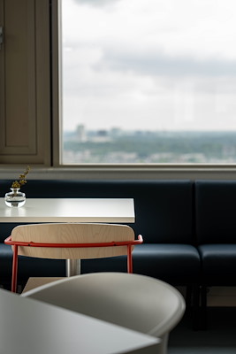 opleveren van hun nieuw gehuurde kantoorvloer op de 19e verdieping. De een na bovenste verdieping in het gebouw Le Mirage aan de Vliegend Hertlaan in Utrecht had een sobere inricht en uitgesproken kleuren die niet passte bij de vernieuwde uitstraling van Manhattan. Daarnaast ontbraken vergaderruimtes en belruimtes, samenwerkplekken en concentratieruimtes.