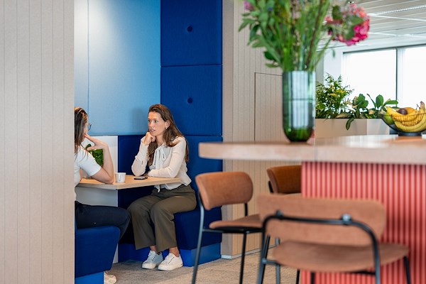 In de open kantoorvloer zijn nieuwe wanden gezet voor de vergaderruimtes, deze ruimtes onderbreken de open werkplekken. Dit zorgt voor meer rust en betere akoestiek.