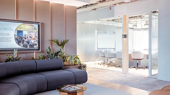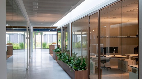 Voor dit kantoor in Amsterdam was de wens een exclusief kantoordesign welke past bij de identiteit van het bedrijf. Het eindresultaat mag er zijn, een werkomgeving met luxe hotellobby sfeer. De kantoren en vergaderruimtes zijn voorzien van enkelglaswanden waarvan diverse ruimtes donkergetint glas bevatten. De Glass-Concept glaswand met donkergetint glas zorgt er in dit ontwerp voor dat de sfeervolle en warme uitstraling nog eens extra benadrukt wordt.